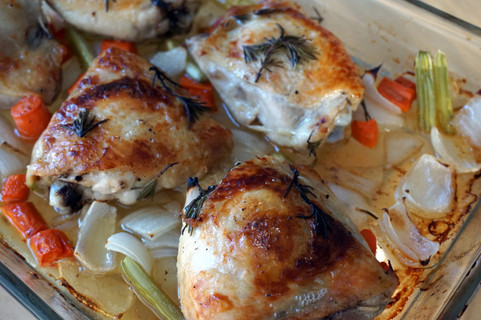 Rosemary and lime roasted chicken thighs with onions and carrots, sauteed mushrooms, sauteed zucchini and onions,, etc